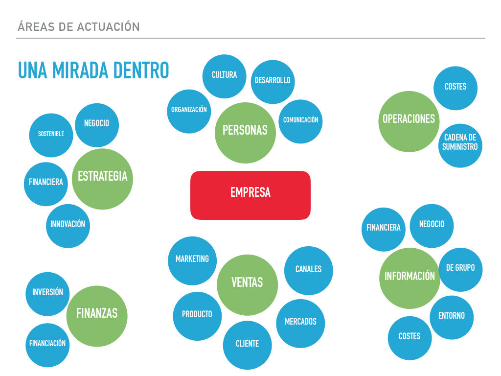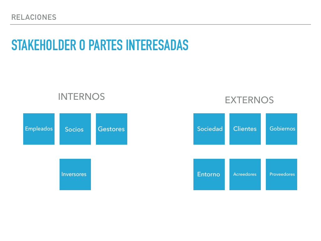 Por este motivo vamos a introducir dos ámbitos: por un lado, las partes interesadas en la empresa o ¨stakeholders¨ y por otro lado, las áreas de actividad de la empresa.