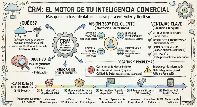 En un entorno empresarial cada vez más competitivo y centrado en el cliente, la gestión eficaz de las relaciones con estos se ha convertido en un pilar fundamental para el éxito y la sostenibilidad de cualquier negocio con una actividad comercial relevante. Aquí es donde entra en juego el CRM (Customer Relationship Management), una herramienta estratégica que va más allá de una simple base datos para convertirse en el epicentro de la inteligencia comercial de la compañía.