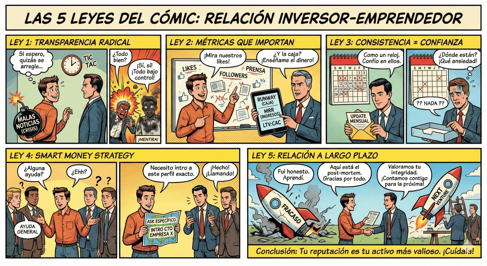 - Proteges tu reputación – Si esta startup quiebra pero fuiste transparente, invertirán en tu próximo proyecto. Si les mentiste, nunca más.