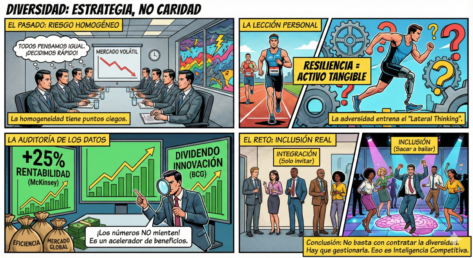 Como deportista que ha tenido que reaprender a correr con una prótesis, sé que tener las mejores herramientas (la diversidad) no sirve de nada sin el entrenamiento y la voluntad para usarlas (el liderazgo inclusivo). En la empresa, ignorar este activo no es solo una falta de sensibilidad social, es, en términos de auditoría, una negligencia financiera.